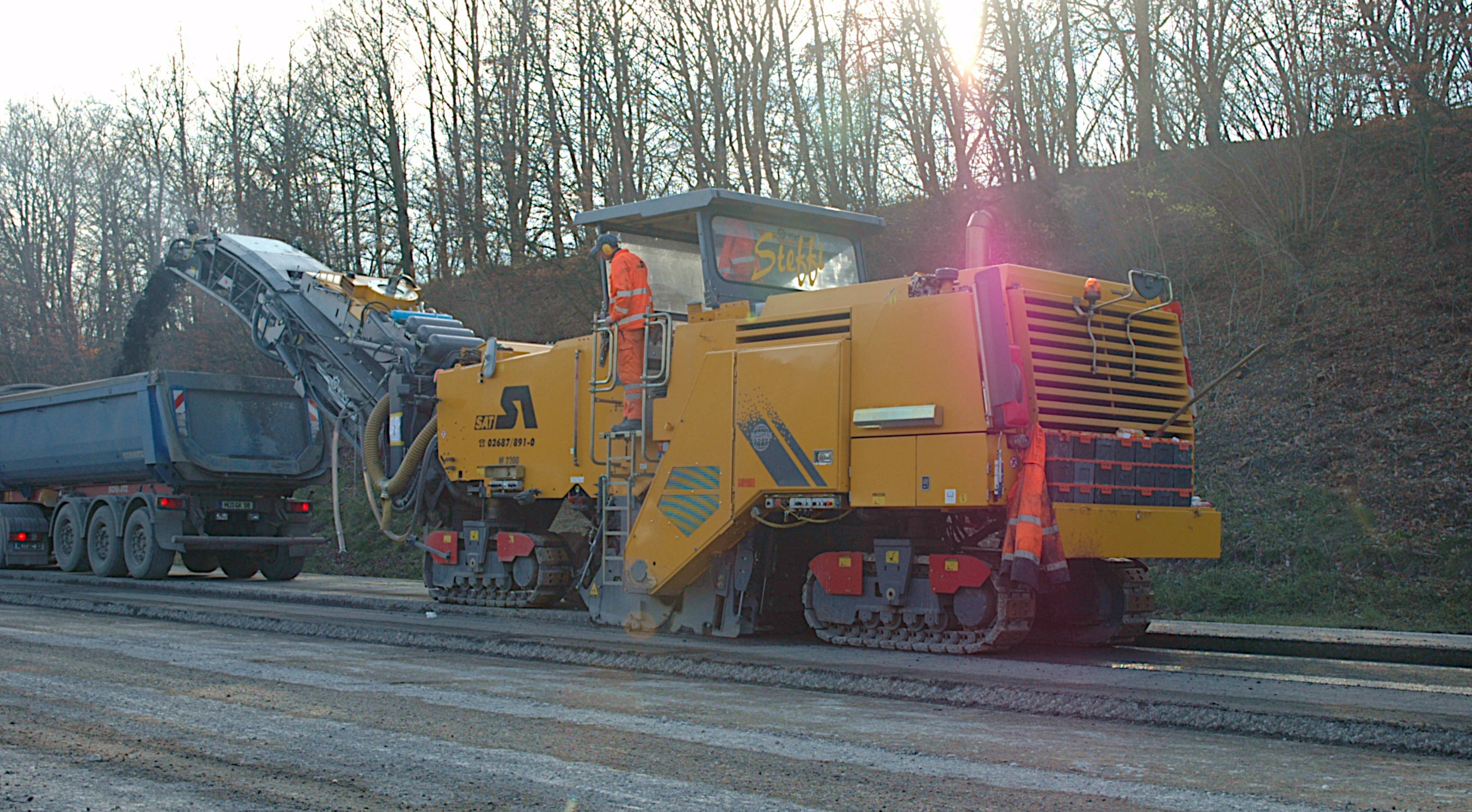 Auch die Mehrkosten für das lagenweise Fräsen sind überschaubar. im Vergleich zum Vollausbau sind es 15 – 20 %, die bei den Kosten für den Gesamtprozess aufgrund der Einsparung neuer Gesteinskörnung meistens kompensiert werden. Die Gesamtwirtschaftlichkeit ist also gegeben.