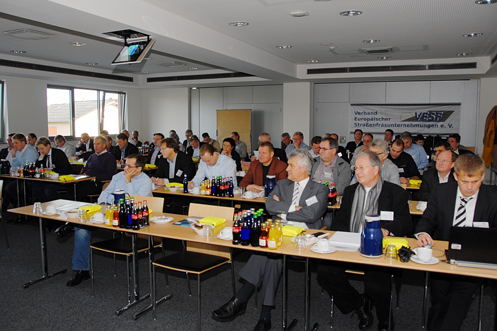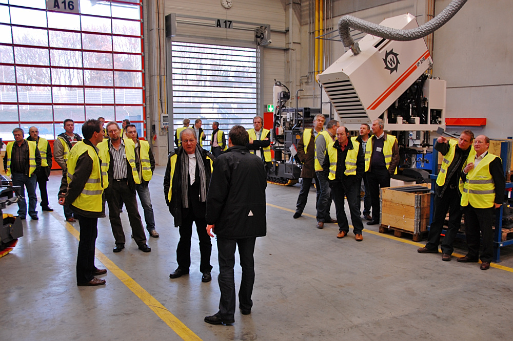 The manufacturer of milling machines had invited the VESF to the headquarters in Windhagen, where amongst other machines, the cold milling machines are manufactured. Besides the election of a new board, themes discussed were: new laws for the machine transport, operating cost of cold milling and environmental laws in Europe.