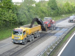 Großfräse beim lagenweisen Abtrag der Fahrbahndecke auf einer Autobahn. Foto: ABP GmbH |