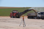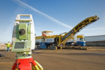3D-Steuerung von Großfräsen: Eine Totalstation verfolgt die Maschine über ein Prisma und funkt die Messergebnisse an die Maschine. Dort vergleicht ein Computer Soll- und Istwert und korrigiert bei Bedarf die Frästiefe. Foto: Freesmij |