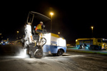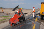 Demarkieren der Fahnbahnmarkierungen auf einer Autobahn mit einer Spezialwäswalze. Foto: GMS Fahrbahnsanierungen mbH |