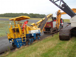 Steilhangfräsen: Hierzu wird die Fräse über einen Bagger und Ketten in der Schräglage fixiert. Foto: Freesmij |