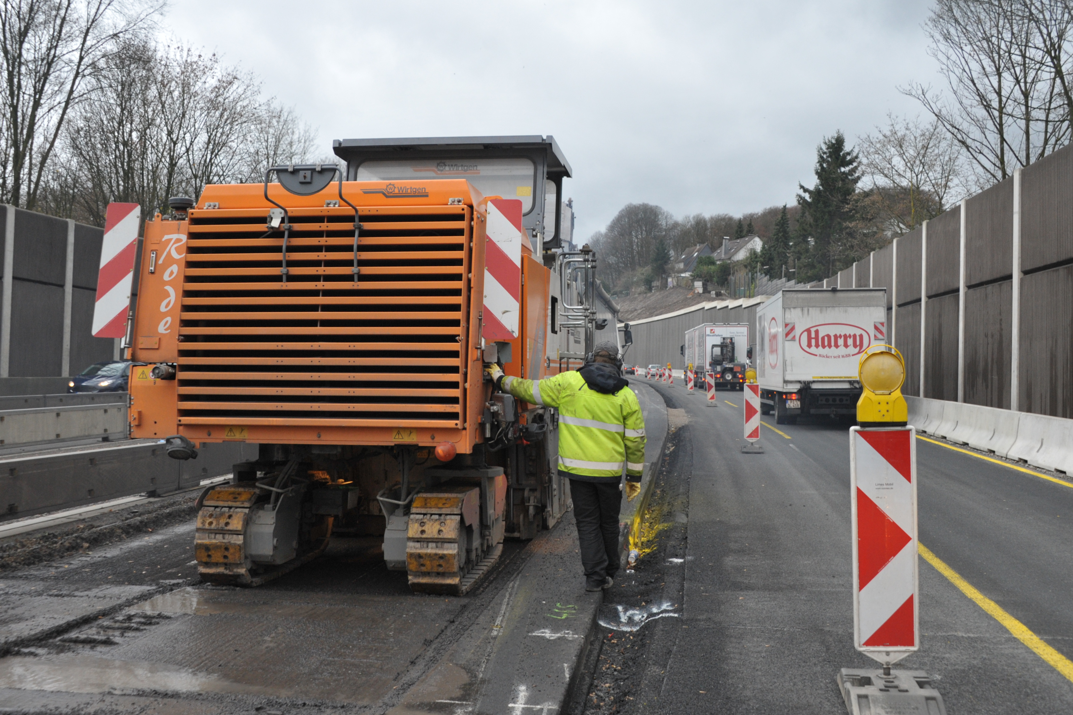 If a full closure is not possible, special arrangements have to be made that involve additional expenditure. For example, when using a large milling machine with a cabin, it would be conceivable to prohibit all construction site personnel from entering the area facing the traffic and also not to open the cabin window. With these precautions, BM on the side facing the traffic could be reduced to zero. In doing so, the tendering authorities must be aware of the fact that the restriction of freedom of movement can also result in a loss of quality, for example on the precision when setting a milling track, for which the view out of the cabin window can be important.